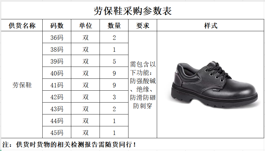 要求:防强酸碱、绝缘、防滑防砸防刺穿