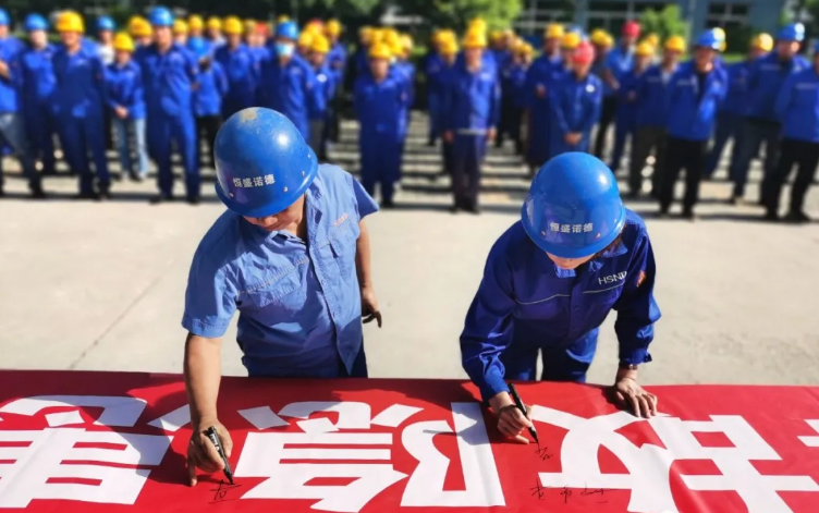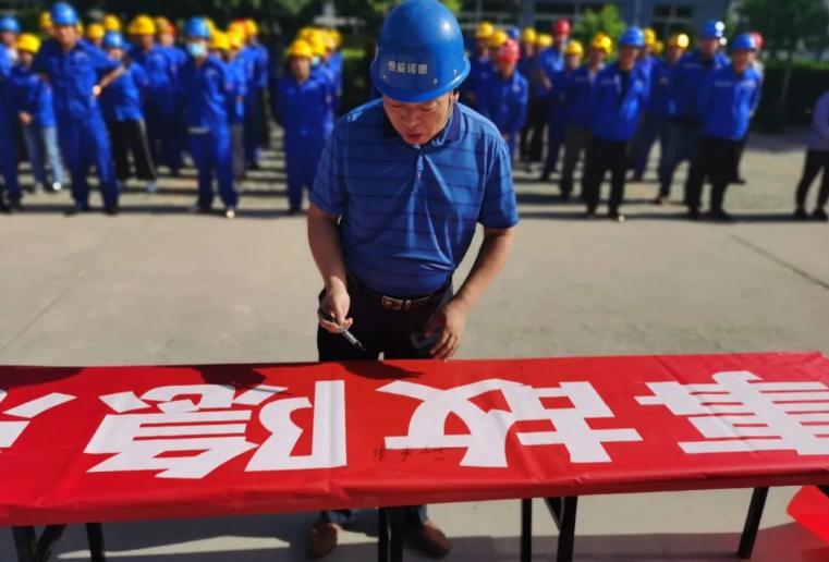 邢总带领参加仪式的一百余人一一上台,在主题横幅上签名并宣誓承诺!