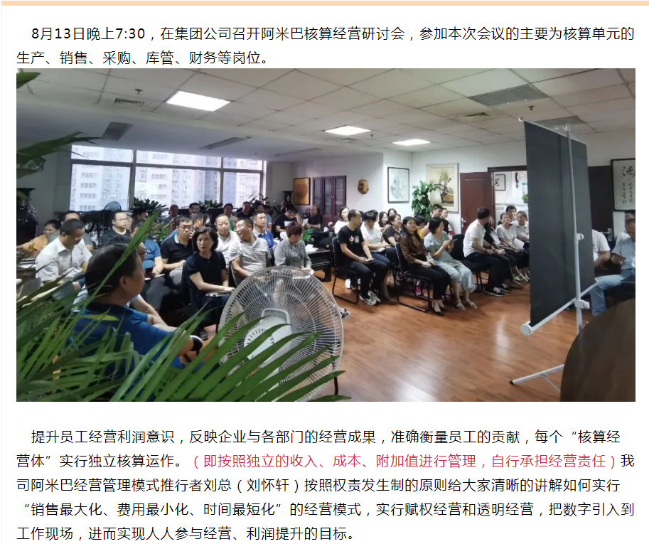 7月24日下午1点整,吉利电子2020年上半年工作总结分析会在总公司聂总办公室召开。董事长聂新宇、副总经理邢岁平、各子(分)公司高管、各部门负责人参加了本次会议。 会议由总公司行政人事部南文秀主持。首先,由阿米巴哲学巴长一一上台对上半年哲学情况进行总结和汇报,并通过评分选出前八名团队进行了奖励。之后,...