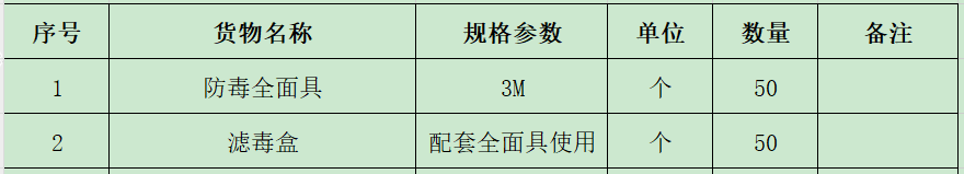 采购:防毒全面具及滤毒盒