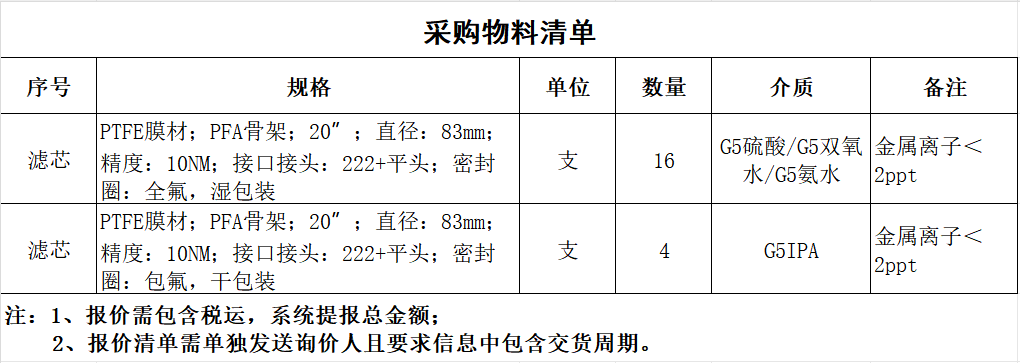 采购:滤芯一批