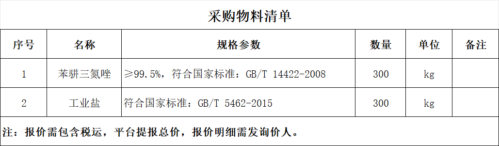采购:苯并三氮唑及工业盐